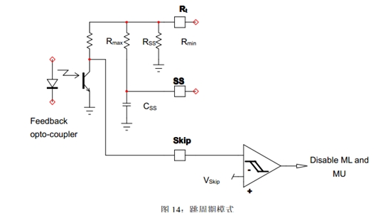 1.一個引腳用于Fmax、Fmin及FSS:Rmin決定LLC最小頻率;Rmin//Rmax決定LLC最大頻率;Rmin//RSS決定LLC啟動頻率;RSS和CSS決定軟啟動持續時間。Rt引腳控制LLC