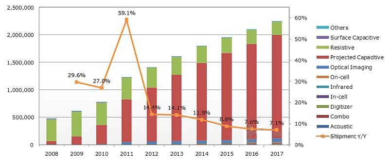 - 智能手機(jī)迅猛增長帶動觸摸面板市場迅速擴(kuò)大