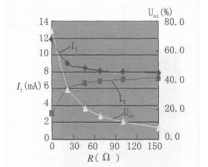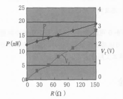 計算機利用對分法算出了在總電流為15mA,外加偏置電阻(R)為R4=R5=0 , 22 , 47 , 68 , 100 , 150, 200 (Ω) 時, D1 和D2 的電流( I1 和I2) 、亮度均勻性( Uni)、正向電壓(V5) 、以及偏置電阻帶來的功耗(P)。