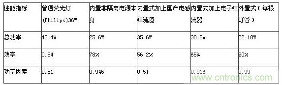 也就是說,直接替換的結(jié)果是效率大大降低,對(duì)于國產(chǎn)電感鎮(zhèn)流器,效率只有56.2%。只比普通熒光燈節(jié)電6.8W。 這使得LED日光燈的節(jié)電效能大打折扣,以致合同能源管理(EMC)難以執(zhí)行。