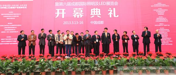 大會開幕式由成都德納展覽有限公司總經理李仕全先生主持,出席開幕式嘉賓包括:成都市錦江區委副書記/區長張余松、韓國產業融合協會崔萬范副會長、韓國led普及協會方炳國專務理事、四川省建設廳原副廳長/四川省市政市容協會理事長楊啟厚、四川省照明電器協會常務副理事長/秘書長陳白瑤、國家半導體聯盟副秘書長/重慶市LED照明研發與產業聯盟秘書長陳偉民、四川省市政市容協會城市照明分會秘書長葉建華、上?,F代國際展覽有限公司總經理張定國、上海新格雷展覽服務有限公司總經理郁士明、德納展覽集團董事長潘偉。上?,F代國際展覽有限公司張定國先生、成都市錦江區區委副書記/區長張余松同志、德納展覽集團董事長潘偉先生發表重要致辭,會后領導參觀展會并給予了高度評價。