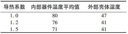 表1 不同導(dǎo)熱系數(shù)的膠體對(duì)溫度的影響