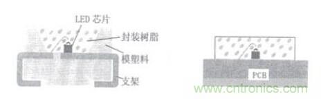 (a)基于導線架的LED封裝 (b)LED芯片貼PEB板
