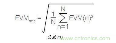 這些考慮為表示為百分數的EVM提供了以下公式,見等式1:其中EVM(n)是歸一化后的每個符號的誤差矢量幅度,N是組里的符號數量。如上所述,TR標準假設由最大參考符號進行歸一化。