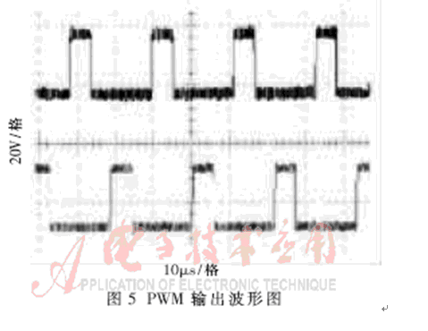 在以IGBT設(shè)計(jì)的逆變電源中,PWM控制電路是極其重要的組成部分,SG3525脈寬調(diào)制型控制器作為SG3524的改進(jìn)型,更適合于開關(guān)器件的雙端DC-DC變換器,它的外圍電路原理圖如圖4所示,輸出波形如圖5所示。