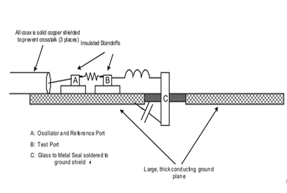 測試電感性能的最有效方法就是將被測試電感放置在最終開關(guān)電源電路上,然后對此電路的效率進(jìn)行測量。但是,這種測試方法需要有最終電路,不易采用。現(xiàn)在,有一種相對簡單的測試方法,可以在設(shè)計開關(guān)電源前對電感的磁芯損耗進(jìn)行測試(在其設(shè)定的開關(guān)頻點(diǎn)上)。首先,將磁芯串連放置在低損耗電容介質(zhì)上(比如鍍銀云母)。然后,用一系列共振模驅(qū)動。其中介質(zhì)的電容值需要與被測電感的開關(guān)頻率一致。最后采用網(wǎng)絡(luò)分析儀來完成整個測試過程(信號發(fā)生器加上一個射頻伏特計或者功率計也可以完成測試)。測試設(shè)備的結(jié)構(gòu)如圖2所示。