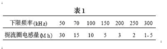 L1用于濾除低頻共態(tài)噪聲,它的磁芯一般采用高頻鐵氧體磁性材料。由于鐵氧體磁性材料沒有渦流的影響,高頻率仍能保持較高的導磁率,缺點是弱磁場容易飽和,但是L1在繞制時采用雙線并繞的方式,即在一個閉合磁路的磁芯上繞制相同電感量的兩個繞阻,電源電流經(jīng)兩個繞阻產(chǎn)生相反磁通,相互抵消,防止磁芯飽和。對于共態(tài)噪聲。互感系數(shù)產(chǎn)生磁通相互增強,即電感量增強,能很好的抑制共態(tài)噪聲。L1的共態(tài)扼流圈的電感量一般由所要抑制的噪聲電平的下限頻率(DC/DC轉(zhuǎn)換模塊的基波頻率)確定,下限頻率越高,所需要的電感量越小,粗略對應值見表1。