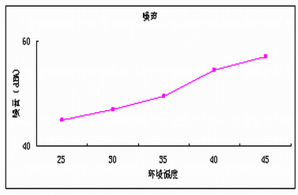 音頻噪聲污染主要控制方法是選用低噪音換熱單元,同時機柜采用消音措施。研究表明,換熱單元調速可有效的降低機柜噪音。圖5是某型戶外產品噪音水平與環境溫度關系曲線,從曲線可看出,采用調速后,隨著環境溫度減小,戶外柜噪音明顯降低。由于夜晚時環境溫度變低,因此采用該項技術的設備晚間有更低的噪音水平,非常符合實際應用環境的需要。