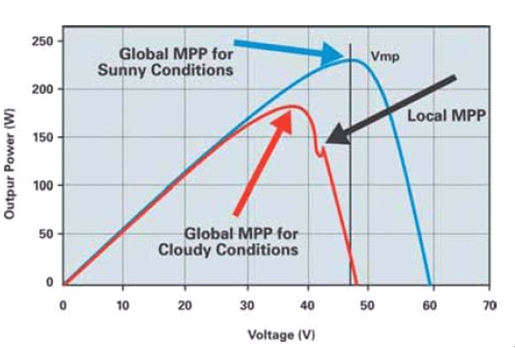 作為一種替代解決方案,人們提出了一種增量自感算法,通過(guò)定義一個(gè)峰值,然后,求解功率曲線的微分,從而得出MPP點(diǎn)。雖然這種方法沒有因?qū)挿秶袷幰鸬牡托蕟栴},但是,它存在把本地峰值誤設(shè)為MPP點(diǎn)的可能。