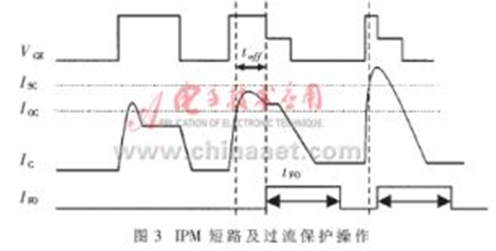 ,大多數IPM采用兩級關斷模式。為縮短過流保護的電流檢測和故障動作間的響應時間,IPM內部使用實時電流控制電路(RTC);使響應時間小于100ns,從而有效抑制了電流和功率峰值,提高了保護效果。
