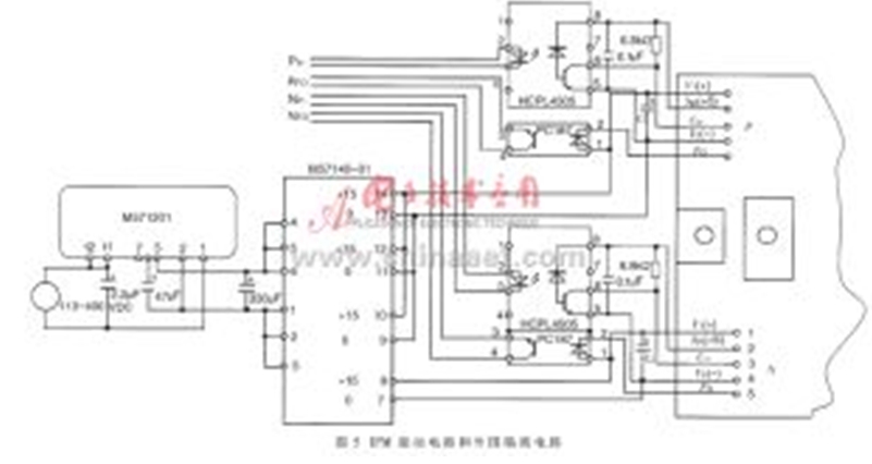 筆者在DSP控制開關磁阻電機的項目中,選用IPM作為功率變換器的主開關器件,控制器采用了德州公司的TMS320F240 數字信號處理器,功率驅動電路的輸入(即IPM的控制信號)由TMS320F240內含的全比較單元相對應的PWM1~PWM4產生。