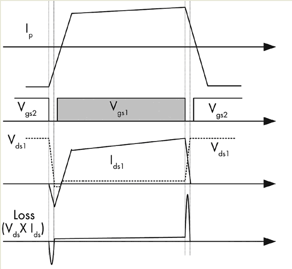 圖2. 不對稱半橋轉(zhuǎn)換器的詳細開關(guān)波形