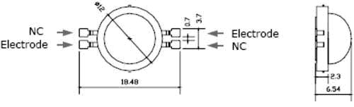 AC LED成熟的產品如首爾用于AC110V的AX3201、AX3211和用于220V的AX3221、AX3231。用于AC110V功率在3.3W~4W,工作電流40mA;用于AC220V功率在3.3W-4W,工作電流20mA(圖4)。LED晶粒直接邦定在銅鋁基板上。引腳如圖5所示。