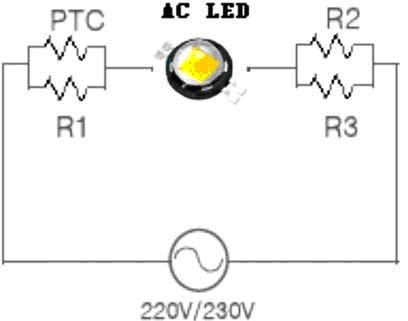 在60Hz的交流中會以每秒60次的頻率輪替點亮。整流橋取得的直流是脈動直流,LED的發光也是閃動的,LED有斷電余輝續光的特性,余輝可保持幾十微秒,因人眼對流動光點記憶是有惰性的,結果人眼對LED光源的發光+余輝的工作模式解讀是連續在發光。LED有一半時間在工作,有一半時間在休息,因而發熱得以減少40%~20%。因此AC LED的使用壽命較DC LED長。
