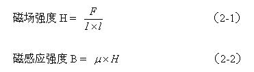 (2-1)式中磁場(chǎng)強(qiáng)度H的單位為奧斯特(Oe),力F的單位為牛頓(N),電流I的單位為安培(A),導(dǎo)線長(zhǎng)度的單位為米(m)。(2-2)式中,磁感應(yīng)強(qiáng)度B的單位為特斯拉(T), 為導(dǎo)磁率,單位為亨/米(H/m),在真空中的導(dǎo)磁率記為 , = 1。由于特斯拉的單位太大,人們經(jīng)常使用高斯(Gs)作為磁感應(yīng)強(qiáng)度B的單位。1特斯拉等于10000高(1T=104Gs)。