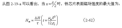 從圖2-19-a中可以看出,由于渦流產(chǎn)生反磁化作用的緣故,在鐵芯或鐵芯片中心磁場(chǎng)強(qiáng)度最低邊緣磁場(chǎng)強(qiáng)度最高。