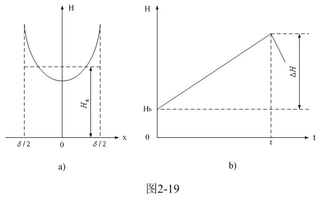在圖2-19-b中,隨著時(shí)間線性增長(zhǎng)部分是變壓器初級(jí)線圈勵(lì)磁電流產(chǎn)生的磁場(chǎng);Hb是為了補(bǔ)償渦流產(chǎn)生的去磁場(chǎng),而由變壓器初級(jí)線圈另外提供電流所產(chǎn)生的磁場(chǎng)。