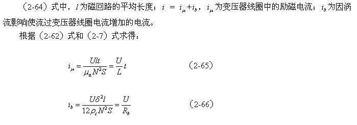 [page]圖2-20-a就是根據(jù)(2-67)、(2-68)式畫出的開關(guān)變壓器受渦流影響時(shí),輸入端磁化過(guò)程的等效電路圖。