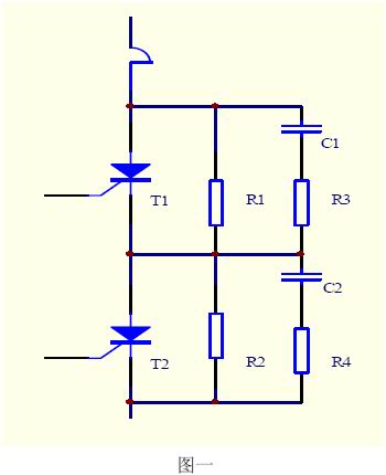 通常使用兩只晶閘管串聯(lián)工作以解決單只晶閘管耐壓不足的問題。這就需要解決晶閘管的工作電壓平均分配問題,包括靜態(tài)均壓與動態(tài)均壓。靜態(tài)均壓可采用無感電阻串聯(lián)分壓的方式解決;動態(tài)均壓比較復(fù)雜,這是因?yàn)椋涸?shù)dv/dt的差異以及反向恢復(fù)時間的差異導(dǎo)致開通與關(guān)斷過程中元件承受的電壓分配不均,極端情況可使支路電壓全部加在一只晶閘管上。