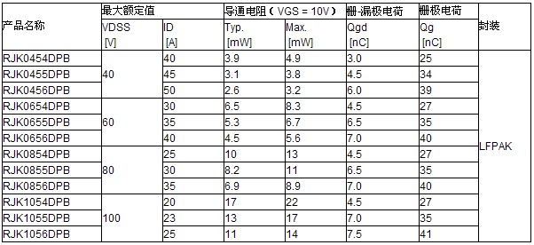 新型功率MOSFET采用瑞薩得到普遍認可的LFPAK(瑞薩科技公司封裝編號)*4高性能封裝。它提供了低封裝電阻和出色的散熱特性,能夠防止元件出現過熱的情況。與傳統的SOP-8或類似的封裝相比,該封裝本身就為產品實現了低損耗。從內部直接連接到導線框上,從而降低了封裝電感,保證了高頻操作的實現。