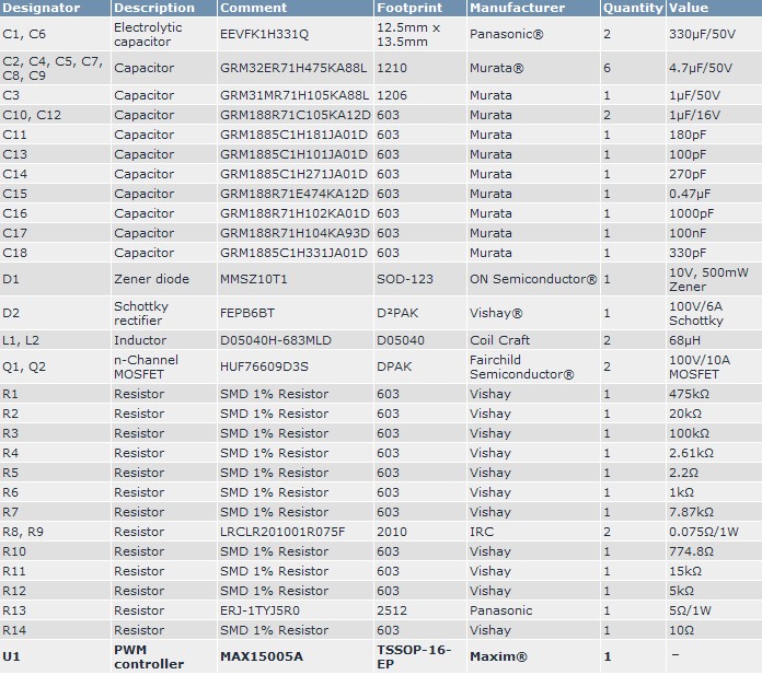 表1列出了參考設(shè)計(jì)的材料清單(BOM)。