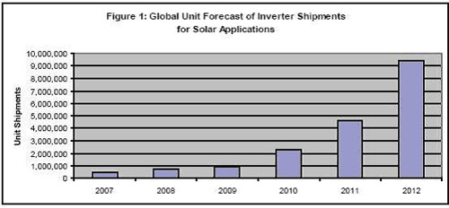 • 2012年全球用于太陽能系統的逆變器出貨量將從2008年時的723,329個增長到950萬個