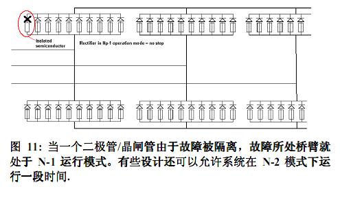 整流器中的半導(dǎo)體和快熔的配合需要仔細考慮。一個考慮周全的熔斷器保護方案基本不存在半導(dǎo)體爆炸的可能。與之相反,不當(dāng)?shù)南到y(tǒng)設(shè)計將會導(dǎo)致燃弧和起火、損壞整個整流器單元、以及操作人員的人身傷害。按照N-1模式設(shè)計系統(tǒng)可以保護用戶免受生產(chǎn)線部分或全部停頓帶來的損失。因此,在大功率整流應(yīng)用中,都是基于N-1模式的連續(xù)滿載運行。在某些應(yīng)用中,客戶甚至要求按N-2-或更多來進行設(shè)計,這些都要加以考慮。如果整流器在N-x模式下運行了過長的時間,而整流器本不是按照N-x模式來設(shè)計的,那么結(jié)果就是故障熔斷器所在橋臂的所有其他熔斷器也受到了傷害。
