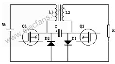 功率雙向流動CUK變換器(圖2)與傳統的單向功率流動CUK變換器不同的是:在原來開關管Q1和二極管D1兩端分別反向并聯二極管D2和開關管Q2如圖3所示。這個電路具有對稱性,輸入輸出電流方向可正可負。右邊負載R換為下正上負電壓源Vs,左邊電壓源Vs換為負載R,則功率從右向左倒流[2]。