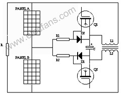 在DC--DC變換器中,用具有單向導電性的晶體管和場效應管做開關,只能實現功率的單方向流動,而實際各太陽能電池板開路電壓差別正負是隨機的。需要一種可以實現功率雙方向流動DC--DC變換器。