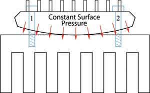 除TinyDIP/SMD外,SPM的表面都會有一定的翹曲。圖4為這種翹曲的一個夸張示意。模塊是用一些從表面中間穿出的螺絲緊固在散熱片上。如果安裝恰當,這種凸狀表面能保證有足夠的熱量從模塊傳遞到散熱片。如果緊固螺絲用力不均,就可能在模塊內產生應力,導致模塊破損或性能下降。建議采用圖4所示的螺絲緊固順序(先按1?2的順序預緊固,再按2?1的順序最終緊固)。通常,預緊固扭矩為最大額定緊固扭矩的25%。只要散熱片與器件緊貼好了,就可通過SPM的內置熱敏電阻獲取散熱片的溫度,從而簡化電路板的設計。