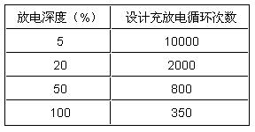 蓄電池的壽命一般是這樣定義的,浮充狀態(tài)下為3-5年或3-8年,并不是說蓄電池在頻繁放電狀態(tài)下使用多少年。對處于非浮充狀態(tài)下工作的蓄電池,其壽命是按照循環(huán)放電次數(shù)和放電深度兩個(gè)因素衡量,如表1所示。簡單地以能使用多少年來衡量,是不正確的。