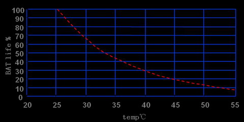 圖2溫度對蓄電池運(yùn)行壽命的影響