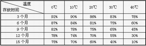 表2:蓄電池存放時(shí)間與環(huán)境溫度對容量的影響