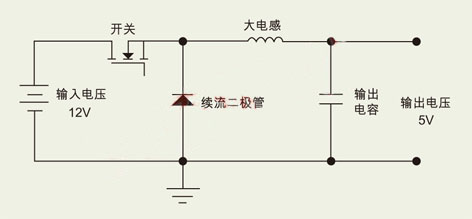 為降壓型開關電源選擇電感器時,需要確定最大輸入電壓、輸出電壓、電源開關頻率、最大紋波電流、占空比。下面以圖2為例說明降壓型開關電源電感值的計算,首先假設開關頻率為300kHz、輸入電壓范圍12V±10%、輸出電流為1A、最大紋波電流300mA。