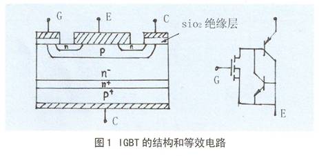 由圖1可見,IGBT是由一個(gè)MOS和一個(gè)npnp四層結(jié)構(gòu)集成的器件。而MOS是金屬—氧化物—半導(dǎo)體場效應(yīng)管的簡稱。其中,氧化物通常是硅襯底上氧化而生成的SIO2,有時(shí)還迭加其他的氧化物層,例如Si3N4,Al2O3。通常設(shè)計(jì)這層SiO2的厚度ts: 微電子系統(tǒng):ts<1000A 電力電子系統(tǒng):ts≥1000A。
