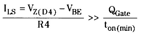 電容C4和二極管D3對(duì)驅(qū)動(dòng)電路的功能至關(guān)重要。通過(guò)選擇電阻R5來(lái)將12V柵極驅(qū)動(dòng)電平設(shè)置在整流器輸出電壓以下。二極管D3將電容C4限定在這一電平。特別是,當(dāng)U1的開關(guān)引腳輸出一個(gè)低信號(hào)來(lái)開啟功率FET時(shí),信號(hào)被電平位移到Q3的基極。晶體管Q3開啟,并快速地將Q4的柵—源電容CGS充電至 12V。如果沒(méi)有C4和D3的話,關(guān)閉Q4會(huì)讓Q3成為一種漏極接地的昂貴的高壓雙極型晶體管。當(dāng)U1的開關(guān)引腳輸出一個(gè)高信號(hào)來(lái)關(guān)閉功率FET時(shí),該信號(hào)被電平位移至Q2的基極。Q2開啟,有效地將Q4的柵極與輸入電壓連接。在沒(méi)有起到本地電源作用的電容C4的情況下,晶體管Q2和Q3無(wú)法提供快速(且因此而高效地)上拉或下拉Q4柵極電容所必需的快速電流峰值,注意到這一點(diǎn)很重要。另外,由R4設(shè)定的電平位移器電流ILS必須足夠高,以在ton(min) 期間移動(dòng)Q4的柵極電荷QGate。也就是說(shuō):