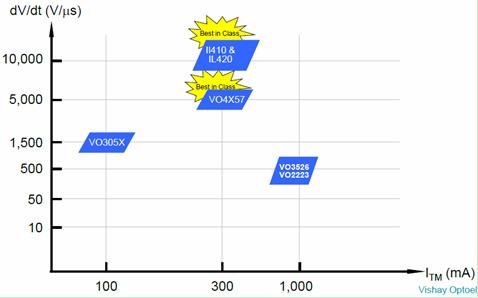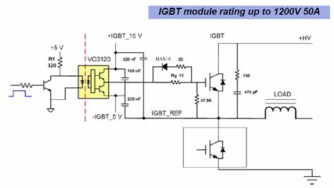 光電耦合器可以大大提高現有系統的性能,并提供從致命的電壓等級的安全隔離。將光耦合器集成到現有的設計中是滿足大多數國家的基本的設計要求。耦合器必須滿足國家和國際機構的各種隔離要求。圖2是Vishay的光隔離器件,圖3為Vishay提供的VO3120是光隔離 IGBT/MOSFET驅動器,驅動能力達1200V /50A,傳播延遲小于400ns,1500V電壓下抗共摸干擾 (CMTI)為25kV/us。