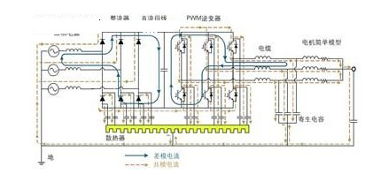 圖2 pwm變頻驅動電機系統的電磁干擾電流流通路徑圖[page]