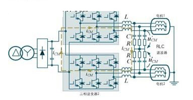 差模干擾則主要是由于功率半導體開關器件開關引起的di/dt經輸入輸出線間的導體傳播。當然,這些只是傳導干擾產生的最本質原因,而不同的電機系統其傳導干擾的具體成因不同,另外,共模干擾和差干騷擾是可以相互轉化的,并不是絕對分開的。比如圖1所示為共模電流傳輸通道的不平衡造成非本質差模噪聲的電路圖。