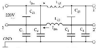 采用無源的EMI濾波器是抑制傳導干擾最有效的辦法。即在電路中插入一個帶通濾波器,讓50 Hz交流電暢通,其余頻率的信號受阻。但要嚴格控制濾波器LC元件的寄生參數,它們的制作工藝、安裝位置、走線方式,都會影響EMI濾波效果。加接圖1所示的濾波電路,可以控制通過傳導耦合進入電網的噪聲電平。