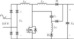 對(duì)于1.5kW功率等級(jí),輸入電流有效值為15A,平均開(kāi)關(guān)電流是13A,峰值電流為22A,需要電流定額至少為30A的開(kāi)關(guān)器件。盡管這個(gè)方案提供了比較簡(jiǎn)單的單級(jí)功率變換,但也存在一些缺陷,如半導(dǎo)體器件承受的電壓應(yīng)力較高、輸出電壓調(diào)節(jié)性能差,輸出電流紋波大。