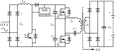 與充電模式2類(lèi)似,充電變換器可以直接采用全橋或帶諧振的全橋變換器。但是,由于充電模式3功率級(jí)更高,與諧振式全橋變換器相比,一般的全橋變換器必然會(huì)對(duì)應(yīng)很高的峰值電流。因此,應(yīng)當(dāng)考慮采用ZVS或ZCS諧振全橋拓?fù)鋪?lái)有效降低損耗。