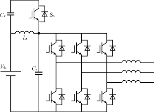 有源濾波器可以采用傳統(tǒng)硬開(kāi)關(guān)PWM逆變器電路,或采用軟開(kāi)關(guān)逆變器,從而工作在更高開(kāi)關(guān)頻率,提高控制帶寬,對(duì)更高階的諧波進(jìn)行補(bǔ)償。諧振直流環(huán)節(jié)變換器比較適合于在較寬中功率范圍逆變器場(chǎng)合下工作。圖18給出了有源箝位諧振直流環(huán)節(jié)逆變器功率電路。