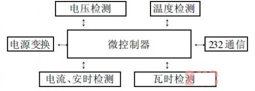 數(shù)據(jù)采集系統(tǒng)硬件結構如圖2所示, 主要包括以下幾個模塊:微控制器、電源模塊、電流及安時檢測模塊、瓦時檢測模塊、電壓檢測模塊以及通信接口電路。