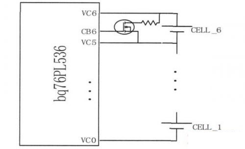 電壓檢測采用bq76PL536 芯片, 它同時檢測3到6節(jié)電池, 測量的單只電池的電壓范圍為1~ 5V。