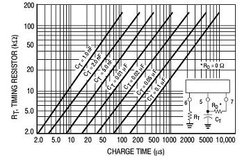 直流電源s V 從腳15 接入后分兩路,一路加到或非門;另一路送到基準(zhǔn)電壓穩(wěn)壓器的輸入端,產(chǎn)生穩(wěn)定的+5V 基準(zhǔn)電壓。+5V 再送到內(nèi)部(或外部)電路的其它元器件作為電源。振蕩器腳5 須外接電容T G 腳6 須外接電阻RT。振蕩器頻率f 由外接電阻 RT 和電容 CT 決定, f = 1.18/RT CT 。可以根據(jù)廠家的一個圖查出。如圖5:
