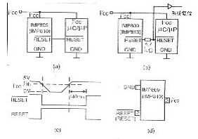 圖7 電源監(jiān)視IC電路及時序圖 a.一般用法 b.具有雙向RESET引腳時的用法 c.時序圖 d.引腳圖