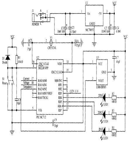 因此,設(shè)計(jì)良好的充電器應(yīng)具有溫度檢測(cè)功能并能夠根據(jù)不同的環(huán)境溫度調(diào)整充電過(guò)程中的各轉(zhuǎn)換電壓值;同時(shí),充電器還應(yīng)具備溫度保護(hù)功能,在充電過(guò)程中,當(dāng)蓄電池溫度超出限定的溫度范圍時(shí)充電器應(yīng)立即停止充電或進(jìn)入涓流充電,并且PIC16C712應(yīng)點(diǎn)亮故障指示燈以提示用戶(hù)出現(xiàn)何種異常。