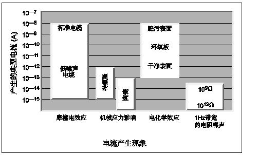 確定了電流偏移、漏流及所有不穩定性后,采取措施減小測量誤差將有助于提高測量準確度。這些誤差源包括建立時間不足、靜電干擾、漏泄電流、摩擦效應、壓電效應、污染、濕度、接地環路,以及源阻抗。圖5中匯總了本節討論的部分電流的幅值。
