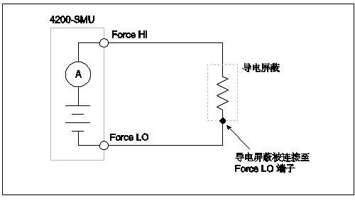 · 屏蔽DUT,并將屏蔽層在電氣上連接至測試電路公共端——4200-SCS的Force LO端子。